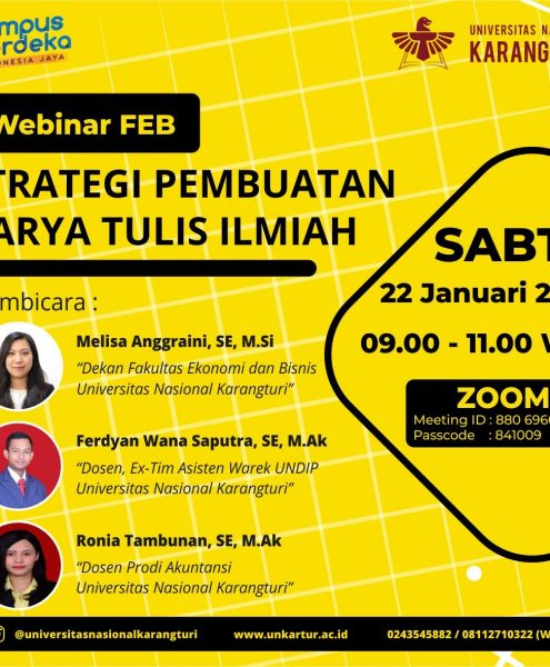 Fakultas Ekonomi dan Bisnis Universitas Nasional Karangturi Hai sobat Unkartur 👋 Fakultas Ekonomi dan Bisnis Universitas Nasional Karangturi kembali menghadirkan webinar dengan tema “Strategi Pembuatan Karya Tulis Ilmiah” yang akan...