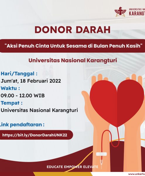 Universitas Nasional Karangturi bekerja sama dengan UDD PMI kota Semarang yang akan menyelenggarakan donor darah massal di bulan Februari ini guna memperingati bulan penuh kasih sayang pada : Hari/Tanggal :...