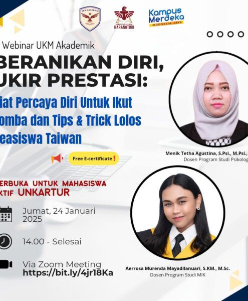 Pada kesempatan kali ini UKM Akademik akan mengadakan webinar online nih, terbuka banget untuk mahasiswa/i aktif UNKARTUR, so jangan lewatkan kesempatan ini yaa!!???????? Yuk dicatat tanggalnya!????️ : Jumat, 24 Januari...