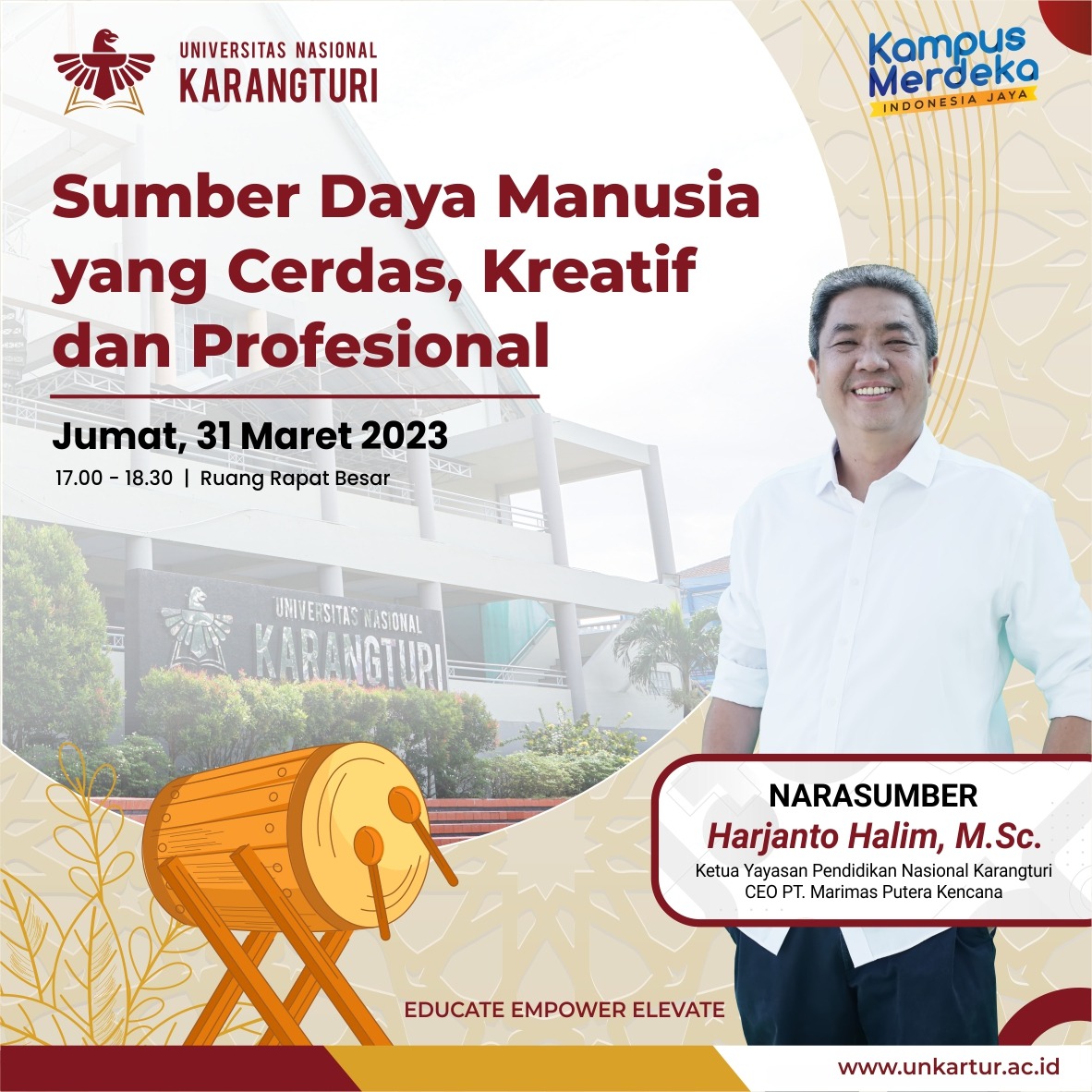 Universitas Nasional Karangturi menyelenggarakan kegiatan PKKMB tahun 2022 pada hari Senin, 26 September 2022 dengan sangat meriah. Acara pada hari pertama ini sangat meriah karena diisi oleh bapak Ketua Yayasan Pendidikan Nasional Karangturi sekaligus CEO dari PT. Marifood Putra Kencana yaitu Bapak Harjanto Kusuma Halim, M.Sc. Mahasiswa juga sangat aktif dan bergembira mengikuti kegiatan PKKMB...Read More